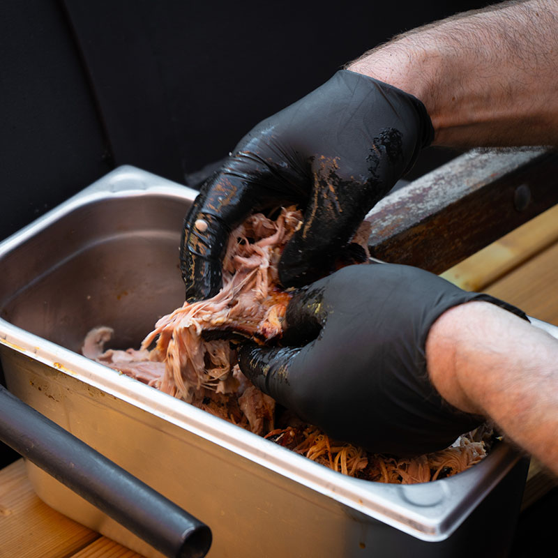 BBQ ist Geduld, Erfahrung und Feuer. Unser BBQ Catering im Kreis Borken lebt genau davon. Mit unserem mobilen, fast zwei Tonnen schweren BBQ-Smoker bereiten wir Pulled Pork, Ribs, Geflügel und weitere Barbeque-Spezialitäten langsam und schonend zu. Das Fleisch kommt frisch vom Smoker, wird live aufgeschnitten und direkt serviert. BBQ Catering mit uns ist ein Erlebnis – geschmacklich und optisch.